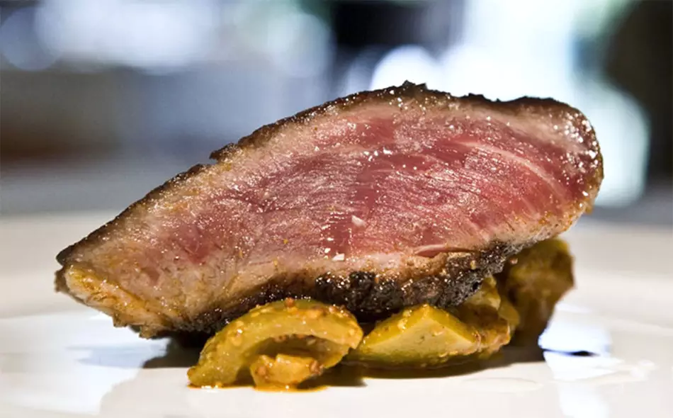 Sobre estas líneas podéis ver la receta de un chef con estrella Michelin que será muy fácil elaborar en una cocina doméstica, algo que nos solicitáis alguna que otra vez quienes queréis trasladar a vuestra cocina la creatividad de los grandes nombres de la cocina española. En este caso es más una cocina de producto, sencilla y sabrosa, lo que gusta a la gran mayoría, así que tomad nota de la receta de Presa blanca marinada y asada con berenjenas de Almagro de Iván Cerdeño, chef del Restaurante El Carmen de Montesión (Toledo), quien, como os explicamos en este post, en el que podéis encontrar su receta de ‘Brandada de bacalao y merengue de ajo’, explica que su cocina es un 50% de producto, un 30% de tradición y un 20% de creatividad.