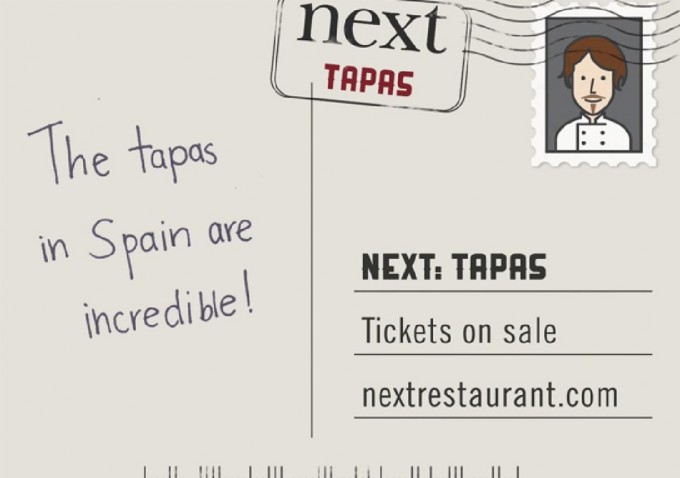 El servicio del Menú Bistró en Next Restaurant concluirá a finales de este mes, por ello Grant Achatz ha empezado a anunciar el segundo menú del año, y como es habitual realiza una presentación en vídeo. Tapas es el nuevo menú con el que el chef pretende sorprender a sus comensales, y por supuesto, se ha inspirado en las tapas y pinchos de nuestro país, concretamente en los que se ofrecen en el País Vasco, Marbella y Barcelona.