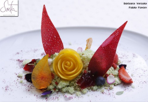 Nuestros lectores de Brasil o quienes tengamos como próximo destino turístico este atractivo país, tenemos cita en uno de los restaurantes que más están dando que hablar, es el Restaurante Soeta, joven establecimiento, inaugurado el pasado año y cuya cocina está conducida por Bárbara Verzola y Pablo Pavón. De esta cocina, del Restaurante Soeta, podemos descubrir un excelso postre llamado Primavera, del que nos aseguran que si bella es la presentación (ha sido elegido como uno de los platos más bonitos del año por la revista Prazeres da Mesa), mejor es aún su sabor.