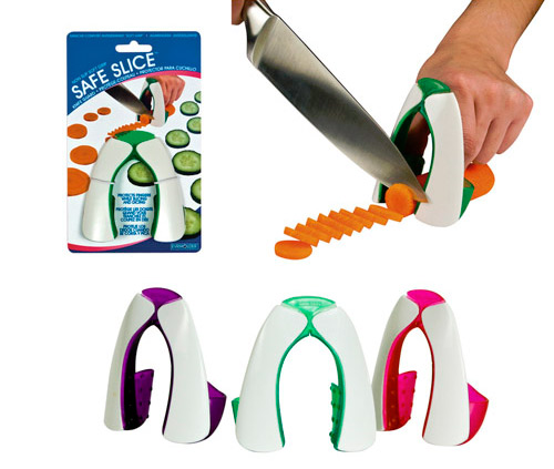Lo vemos seguro y podría ser cómodo, aunque quizá se nos escaparía el ingrediente a cortar al no tener un contacto directo con él. Éste es además un utensilio económico, aunque hay que mirar bien dónde comprar, pues en internet lo hemos encontrado a tres precios bien diferentes, siendo el mismo, de la marca Iris, en unos comercios está a 3’60 euros, en otros a 6 euros y en otros a casi 11 euros.