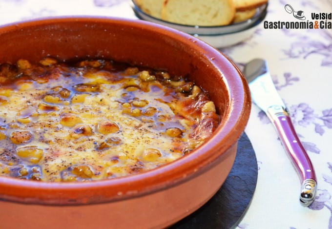 Pasados unos 20 minutos el queso ya tiene que estar fundido, si no se ha dorado colócalo en la parte alta del horno para que se gratine durante 3 o 5 minutos, según el horno.
