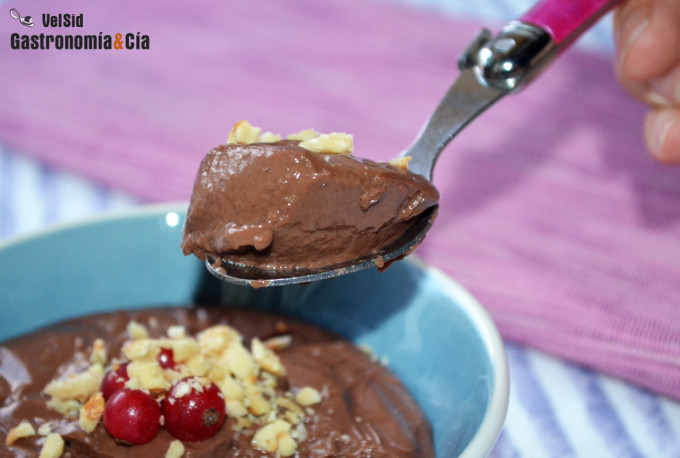 A la hora de servir este pudin cremoso de chocolate y avellanas puedes decorar simplemente con unas avellanas tostadas o, por ejemplo, con unos frutos rojos, como las grosellas, o con alguna galleta crujiente. Es un postre para tomar fresco y disfrutar, así que ¡buen provecho!