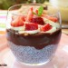 La noche anterior pon en remojo las semillas de chía con la leche o bebida vegetal, puedes optar por bebidas de avena, de arroz, de coco, de almendras… incluso se puede poner en remojo con agua, cada elemento aportará su sabor, recuerda que las semillas de chía son prácticamente insípidas, aunque en este desayuno las natillas de chocolate serán las que las enriquecen más.