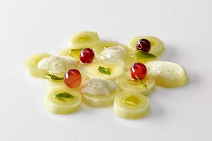 Este plato encierra muchos más sabores, siempre con la elegancia de la cocina del Restaurante Nerua, uvas rojas, albahaca, menta, un toque de cayena… El Puerro salteado, uvas, fondo de pescado y perejil de Josean Alija es un plato alegre en el paladar. Como siempre, os animamos a reproducir la receta del chef en vuestra cocina, siempre es un aprendizaje además de un gozo poder probar platos nuevos y compartirlos con quien se sienta a nuestra mesa. Tomad nota de la elaboración paso a paso y aprovechad los puerros tiernos que están por venir.