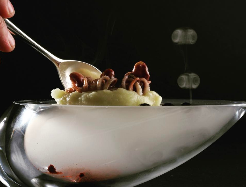 Ilustra estas líneas la presentación de los Pulpitos y chipirón de anzuelo en su tinta con salsa de tikka masala y encurtidos de Mario Sandoval, chef del restaurante Coque de Madrid (2 estrellas Michelin). Y a continuación tenéis la receta paso a paso para poder reproducir esta creación en vuestra cocina, con ella, además de agasajar a vuestros comensales y disfrutar de un plato sabroso y sorprendente, podréis poner en práctica distintas técnicas culinarias para seguir aprendiendo y avanzando al frente de los fogones.