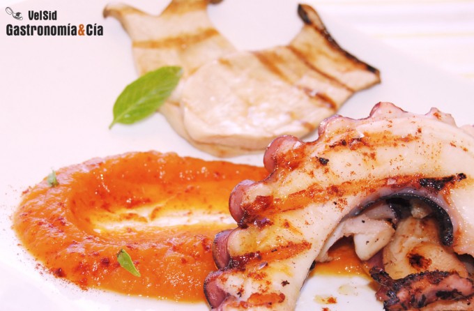 Pues vamos con la receta de pulpo a la parrilla con salsa de calabaza y setas de cardo, es muy fácil y rápida de hacer, y aunque no tengamos una auténtica parrilla con brasas, sale muy bien con una buena parrilla de hierro colado.