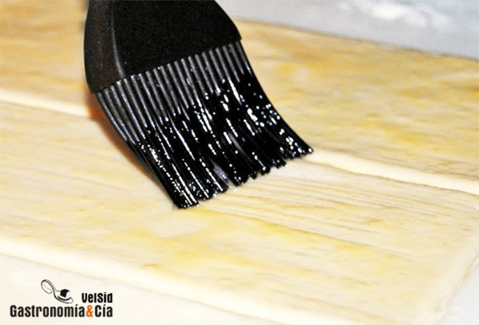 Ya sabéis que para pintar masas normalmente se utilizan yemas, huevos enteros, yemas con un poco de leche, huevo entero con un poco de leche o leche. El proceso es muy sencillo, se bate el huevo o la yema (con o sin la leche) y se utiliza un pincel para mojar en esta mezcla y embadurnar la masa que se va a hornear.