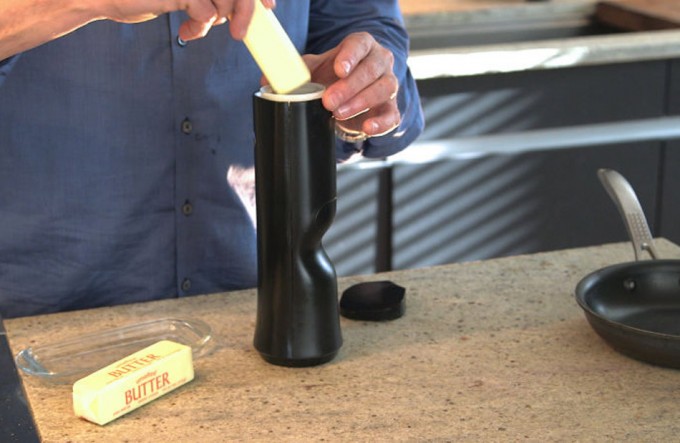 Para quienes utilizan la mantequilla habitualmente para cocinar, para aderezar unas palomitas de maíz, untar unas tostadas, etc., quizá les resulte interesante el pulverizador de mantequilla BIEM, un accesorio de cocina que se anuncia como el primer pulverizador 100% efectivo que utiliza cualquier tipo de mantequilla del mercado y que sólo funde la cantidad que se rocía, el resto permanece en su estado semisólido original.