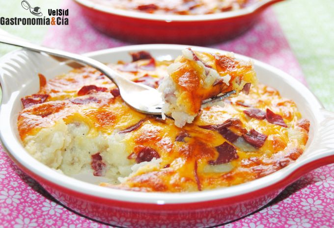 Cualquier día de la semana tus comensales agradecerán un cremoso puré de patatas gratinado, en esta ocasión la propuesta invita a utilizar un queso fundente como el cheddar, pero se puede variar y utilizar otros tipos de queso como el emmental, la mozzarella… del mismo modo, utilizar jamón serrano o unos daditos de bacon salteados, harán que este entrante conquiste al paladar más exigente.
