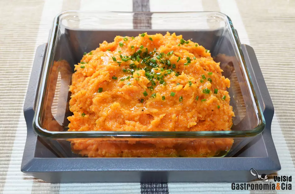 El puré de patatas es una guarnición muy tradicional, y del mismo modo se puede elaborar un puré de coliflor, como os mostrábamos aquí, o de boniato, como podréis ver a continuación, una guarnición tan rica y nutritiva como la primera, aunque con algunas diferencias, tal y como os mostramos en el post sobre las propiedades nutricionales del boniato. Seguro que a los vuestros les gustará variar y de vez en cuando disfrutar de este puré rústico de boniato.
