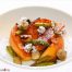 Crema de zanahoria al curry con leche de coco y tempeh marinado