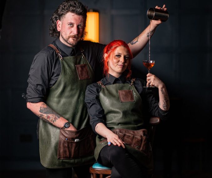El «barcore» también ha impactado en la vestimenta de los bartenders, adoptando un look sofisticado que refleja la seriedad y el arte detrás de su trabajo. El atuendo está inspirado en un “uniforme no uniforme”, es decir, nada convencional. Lucen delantales de lona o cuero sobre camisas blancas que se complementan con tatuajes, piercings y peinados de diseño y originales. Este estilo no sólo unifica la imagen del equipo, también contribuye como parte de esa experiencia visual y sensorial que un bar estilo barcore busca ofrecer a los clientes.