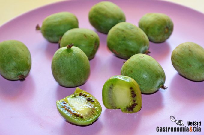 En las fotos podéis ver una pequeña fruta que todavía no es muy conocidas en nuestro territorio, pero no es ninguna novedad, ni tampoco ningún hibrido que se haya creado hace poco tiempo. Esta fruta se conoce principalmente como kiwi enano, kiwi baby, kiwiño, kiwäi kiwi berry, kiwi uva o kiwi cóctel, entre otros nombres. Quizá, en España, el nombre que está ganando terreno es kiwiño, es el que se le ha dado en Galicia porque es una de las zonas de producción de esta fruta. Algunas voces argumentan que, fruto de la desinformación, hay quien piensa que es un híbrido creado en esta provincia española, pero no es así.