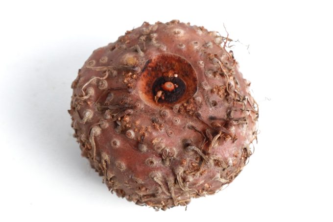 El konjac proviene de la raíz de la planta Amorphophallus konjac comúnmente conocida como konjac, se trata de una planta perenne originaria del sudeste asiático que se cultiva especialmente en países como Japón, China y Corea. Lo más destacado de esta planta es su gran raíz tuberosa, que es la fuente del preciado ingrediente culinario y terapéutico. Esta raíz es rica en glucomanano, una fibra soluble que tiene la capacidad de absorber grandes cantidades de agua, formando una sustancia gelatinosa que se utiliza en la preparación de diversos productos alimenticios.