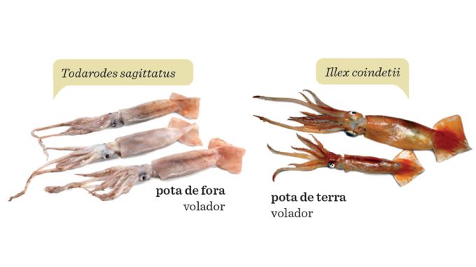Sobra decir que la canana o pota negra, que también se conoce como pota común o calamar volador europeo (o simplemente volador) no tiene nada que ver con esas especies de pota gigantes que se producen en aguas americanas, de las que se encuentran las ‘rabas’ o tiras de más de un dedo de grosor. Véase como ejemplo la pota Illex argentinus, a la que también se conoce como potón del Pacífico o calamar argentino.