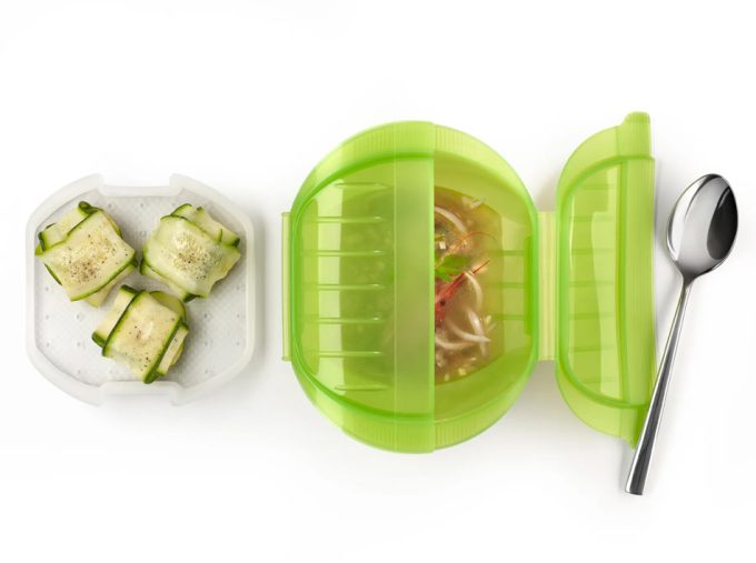 Para las personas que llegan tarde a casa y quieren preparar una cena sencilla, sabrosa y saludable, es una buena herramienta porque poniendo unos filetes de pescado y unas verduras, pueden tener un plato completo listo en 10 minutos. También para quienes les da pereza ensuciar cacharros de cocina para hacer la comida para uno, este estuche después se lava muy fácilmente porque es antiadherente, además, se puede introducir en el lavavajillas.