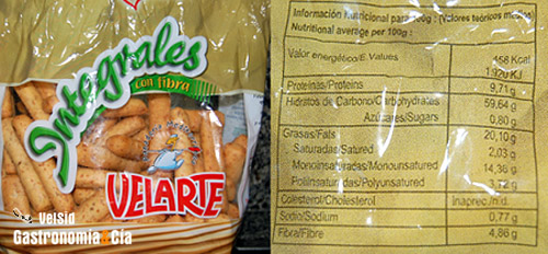 Esto es lo que os comentábamos en el post de los Colines integrales con sésamo, una sorpresa que nos llevamos al realizar una comparativa de dos productos, unos palitos de pan o colines integrales con fibra (a día de hoy continúan con el reclamo “con fibra” y “Aprende a cuidarte”) y unos Donuts clásicos.