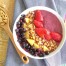 Y después, como topping, se puede añadir más fruta (plátano, fresa, piña, mango…), cereales como la granola, frutos secos, semillas… Como os comentábamos, se puede decir que fuera de su país de origen, el tazón de açai puede incorporar lo que a cada uno le guste, lo que no puede faltar es la fruta brasileña. Nosotros sólo la hemos comprado en polvo, así que para hacer un açai bowl con la textura cremosa y densa, casi como de un helado soft, nunca nos falta el plátano, además añadimos otras frutas rojas, tal vez mango o melocotón (según la temporada) y algo de bebida vegetal.