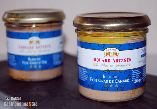 Podemos encontrar dos tipos de bloc de foie gras, la emulsión de foie gras o la emulsión de foie gras con trozos de hígado (aproximadamente en un 30%), considerado de mejor calidad. El foie gras se produce en distintos países, aunque como sabemos, Francia es uno de los que mejor fama tienen sobre la calidad de este tipo de productos. Los últimos blocs de foie gras que han entrado en nuestra despensa proceden de Navarra y de Francia, con el primero, de Katealde Artesanos, elaboramos los Profiteroles de boletus y crema de foie, y empezando a hacer acopio de productos para la Navidad, ya tenemos el bloc de foie gras de oca de pato de Edouard Artzner.
