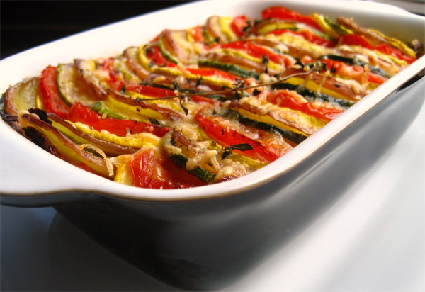 Básicamente, hoy se conoce como tian a un gratinado de verduras montado en capas sucesivas o en hileras regulares (un plato bien compuesto, como la Salade Composée) que se puede mezclar con carne, pescado, queso… y también se puede aplicar para recetas dulces, como un tian de frutas gratinadas.