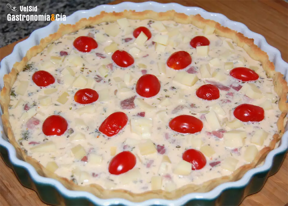 Ya sabéis que una quiche es una tarta salada, y que para hacer su relleno se debe hacer una crema salada que lleva lácteos, que pueden ser nata, fraîche, leche y a veces se añade queso, huevos y las especias y la sal. Esta crema después se hornea, y lo que se consigue con ello es que cuaje gracias a la proteína del huevo, quedando también cremoso gracias a la grasa del lácteo.