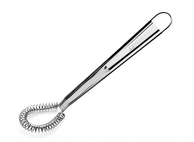 Este batidor manual con espiral y casi plano se utiliza sobre todo para emulsionar mahonesa, vinagretas y salsas similares. Su diseño con forma de espiral o de muelle, favorece que la emulsión sea más rápida que otros tipos de batidores, como los batidores de globo.