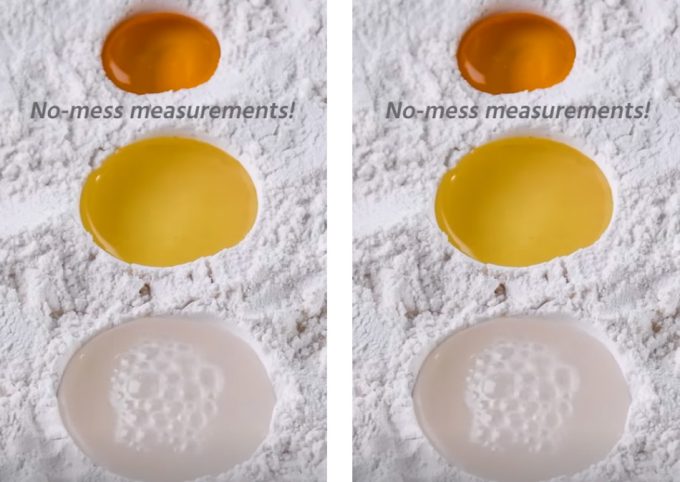 Bajo estas líneas tenéis un breve vídeo (lo que hoy se conoce como #short en YouTube) en el que @SoYummy enseña cómo medir ingredientes líquidos de forma sencilla y lo que es mejor, sin ensuciar apenas la cuchara. Consiste en ahuecar la harina con la cuchara medidora que correspondería utilizar para llenarla, por ejemplo, de aceite o de miel, y después llenar los huecos con el ingrediente correspondiente.