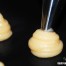¿Cómo se chascan las patatas? Pues una vez peladas, se hunde la hoja del cuchillo en la patata, más o menos hasta la mitad de lo que se quiere cortar, y después se gira la muñeca hacia dentro, haciendo un cuarto de giro con la hoja del cuchillo, para arrancar el trozo de patata que se ha empezado a cortar. De este modo el tubérculo se desgarra y queda una superficie irregular por la que se libera más almidón.