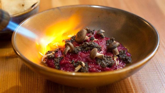 Un ejemplo lo podéis ver en esta receta de Hummus de remolacha con setas de Miquel Pardo, chef del restaurante Cruix de Barcelona, cuya presentación podéis ver encabezando estas líneas, una vez servida la preparación y los complementos del hummus, como las pequeñas setas, el cocinero las sopletea ligeramente. Y es que el soplete de cocina se puede utilizar con distintos fines, calentar, caramelizar, quemar, cocinar…
