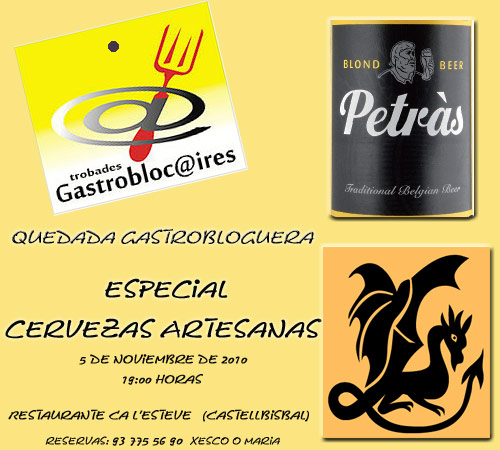 El próximo día 5 de noviembre de 2010 se celebra la primera ‘Trobada Gastrobloc@ire’, un evento que tendrá lugar en el Restaurante Ca L’Esteve (Castellbisbal-Barcelona) y que nace con la intención de ‘mover panderos y montar saraos con temáticas interesantes’ en torno a la gastronomía, como podéis ver en la información sobre esta cita creada en Facebook por sus creadores. La primera Quedada Gastrobloguera es un Especial Cervezas Artesanas, que bajo el título ‘En casa de Lúpulo’, provocará el despliegue de nuevas percepciones de esta bebida y su maridaje con un menú especial, a continuación os contamos.
