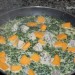 Cuece las espinacas como haces normalmente, puedes utilizarlas frescas o congeladas. Pela y corta la cebolla en pluma o juliana, rehógala en una sartén amplia con un poco de aceite a fuego medio-bajo.