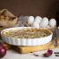 Una vez que tengas la lámina de masa quebrada en el molde, recuerda untarlo con mantequilla previamente, pínchalo con un tenedor y hornéalo a 180º C hasta que esté ligeramente dorado, pues después volverás a introducirlo en el horno con el relleno.