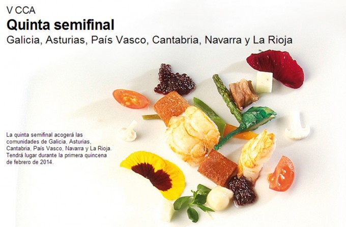Sólo falta una semifinal para conocer a todos los seleccionados para participar en la Gran Final del Concurso Cocinero del Año y del Concurso Camarero del Año 2014 que tendrán lugar en el espacio Alimentaria Experience del Salón Restaurama, de la Feria Alimentaria que se celebrará en Barcelona en el mes de abril. La Quinta Semifinal del Concurso Cocinero del Año 2014 tiene abierta la convocatoria para los cocineros de Galicia, Asturias, País Vasco, Cantabria, Navarra y La Rioja. Del mismo modo, está abierta la convocatoria para la quinta semifinal del Concurso Camarero del Año.