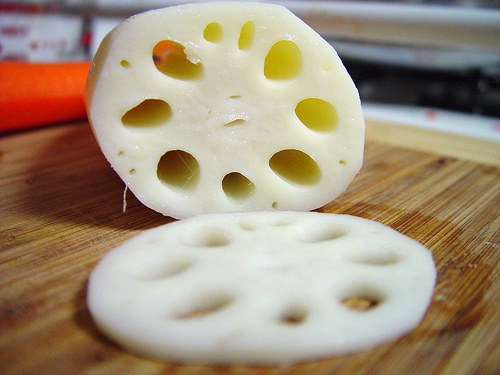 Pero la raíz de loto es lo más consumido, esa parte que por el hábitat de la planta se encuentra sumergido en lagos, estanques o ‘jardines de agua’ proporciona un amplio abanico de posibilidades en la cocina, además tiene una estética especial con la que hace las presentaciones de los platos más llamativas.