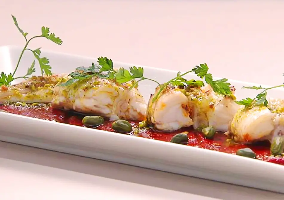 El programa de la televisión catalana ‘Cuines’ está dedicando esta semana a la cocina con frutos secos, avellanas, almendras, nueces, pistachos… y nos gustó ver la receta de Rape con pimientos del piquillo, vainilla y pistachos que elaboró Eduard Xatruch del Restaurante Compartir de Cadaqués y miembro de elBulli Foundation, por eso queremos compartirla con vosotros a través del vídeo y la traducción que realizamos para que todos lo podáis seguir.
