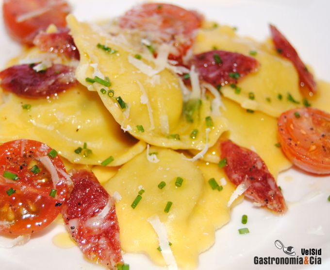 Hoy tenemos una receta de las que nos permiten comer bien dedicando sólo diez o quince minutos a la cocina, días con poco tiempo los tenemos todos, así que lo mejor es tener productos frescos de rápida cocción y complementos que enriquezcan el plato, a ver qué os parecen estos Ravioli de berenjena y requesón con longaniza de Pascua.