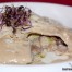 Para hacer el relleno, rehoga en una sartén las setas con un diente de ajo picado, cuando estén listas ponlas en el vaso de la batidora y tritura. En la misma sartén pocha la chalota picada con un poco de aceite (o mantequilla), añade la harina, tuéstala unos minutos y añade la leche, pimienta negra, nuez moscada y sal al gusto, mezcla bien con unas varillas hasta obtener una bechamel fina. Incorpora entonces las setas trituradas y el foie gras, mezcla bien y añade el pan rallado mezclándolo hasta obtener la consistencia del relleno deseada, reserva.