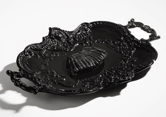 Salar y pintar la raya con la mantequilla negra fundida. Colocar en una bandeja antiadherente y hornear en el horno de carbón (190º C-200º C) durante 3-4 minutos. Sacar de la placa y lacar completamente con la emulsión de mantequilla negra.