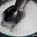 Haz el aire de limón en un cuenco de cristal, mezcla el zumo de limón con el agua y la lecitina ayudándote de la batidora hasta que se disuelva la lecitina. Deja reposar unos minutos y a continuación acciona la batidora en la superficie del líquido procurando que entre el aire y forme la espuma. Deja reposar, puedes ir retirando el aire que se ha formado en la parte superior y continuar haciendo más con el líquido restante.