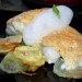 Pon el horno a calentar con el gratinador a 180ºC. Pon en el vaso de la batidora el huevo, el aceite vegetal, el diente de ajo sin el germen y una pizca de sal. Bate hasta obtener un alioli. Incorpora a continuación el pesto y vuelve a mezclar.
