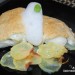 Monta las claras con una pizca de sal, a punto de nieve fuerte. Mézclalas con el alioli de pesto con movimientos envolventes para hacer la muselina y reserva.