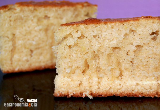 Si ves que la superficie del bizcocho se dora mucho, cúbrelo con papel de aluminio, pero no abras el horno en los primeros 20 minutos para que no se baje.