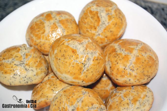 Cuando los retires del horno, déjalos reposar sobre una rejilla y una vez fríos, estarán listos para rellenar con lo que prefieras, dulce o salado. Estos bollos de pan con almendras y semillas de amapola, están deliciosos con crema de cacao, queso a las hierbas, tzatziki, salmón ahumado e incluso solos, busca tu combinación y compártela con nosotros.