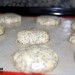 Pasado este tiempo vuelve a trabajar la masa, resulta un tanto pegajosa, así que para manipularla y hacer los bollos úntate las manos con aceite. Dispón un silpat o papel de horno en la bandeja de hornear y ve disponiendo los bollos formados con un poco de separación entre ellos. Bate la yema de huevo y píntalos.