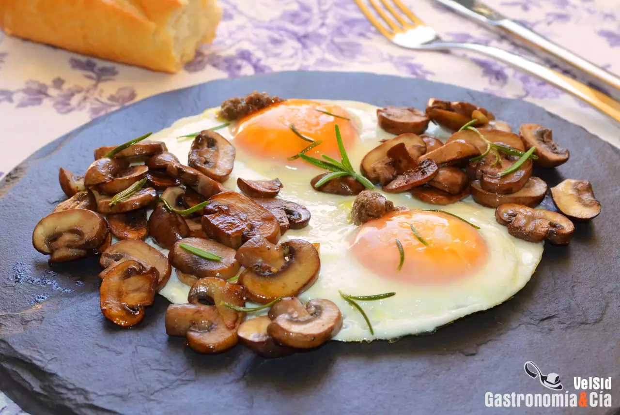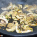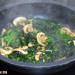 Cuando se haya calentado y el ajo empiece a cambiar de color añade los champiñones limpios y laminados, sala al gusto y rehoga unos tres minutos. A continuación añade las espinacas frescas, se llenará la cazuela, pero con el calor menguarán rápidamente, ayúdales moviendo con la espátula.