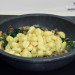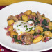Antes de servir la cazuela de gnocchi con huevos y un toque de jamón, añade cebollino fresco picado y, si lo deseas, un hilo de aceite de oliva virgen extra. El resto es comer y disfrutar. ¡Buena cocina y buen provecho!