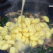 Cuando los ñoquis estén tiernos, añade el jamón, mezcla y haz huecos para añadir los huevos. Una vez que lo hayas hecho, pon la tapa y cocina a fuego medio hasta que la clara haya cuajado.