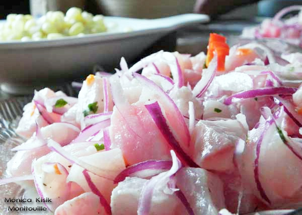 Para redondear más el círculo, Mónica es peruana, así que era inevitable que de este encuentro surgiera como fruto la auténtica y clásica receta de Cebiche peruano para los lectores de Gastronomía y Cía. Así que aquí la tenéis, además de algunos consejos o las costumbres a la hora de disfrutar del cebiche. Y os gustará saber que podéis encontrar más recetas de cocina peruana (entre otras) en su blog, Monitouille.