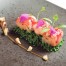 Colocarlo en un bol de vidrio junto con la cebolla. Lavar dos veces en agua muy fría y sin que se maltrate. Frotar la superficie de un bol de vidrio con el trozo de jengibre (kion) y la rodaja de ají limo entero, por todo el bol donde se va a preparar el cebiche. Dejar ambos trozos en el bol.