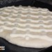 Una vez estirada la masa, pásala a la bandeja del horno cubierta con teflón, silpat o papel vegetal. Decora la masa con la crema pastelera con ayuda de una manga pastelera, dándole formas de enrejado.